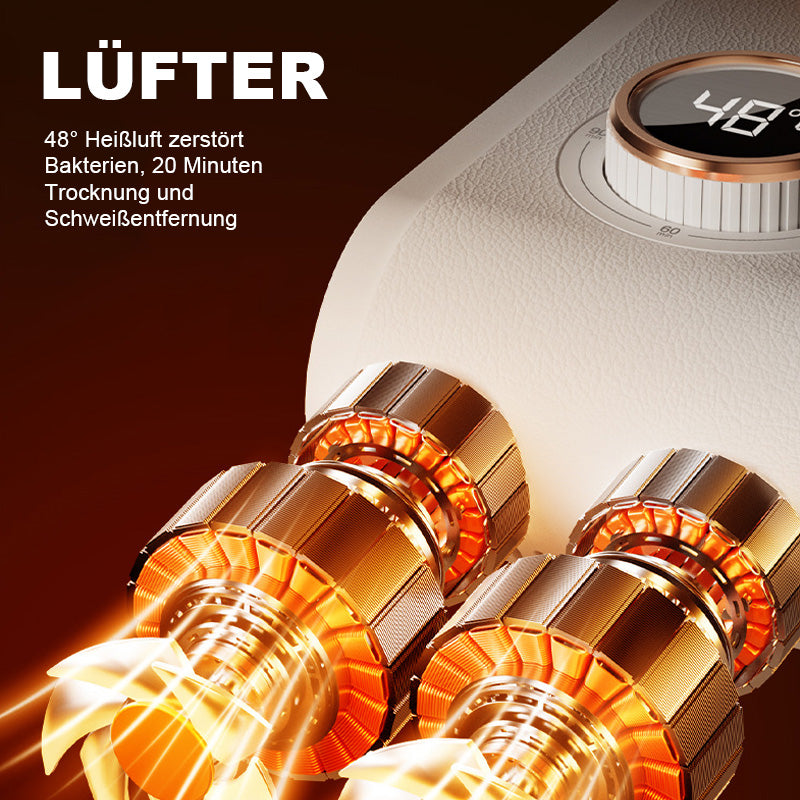 - Warm air circulation: 48°C constant temperature, moisture evaporates, shoes stay dry.