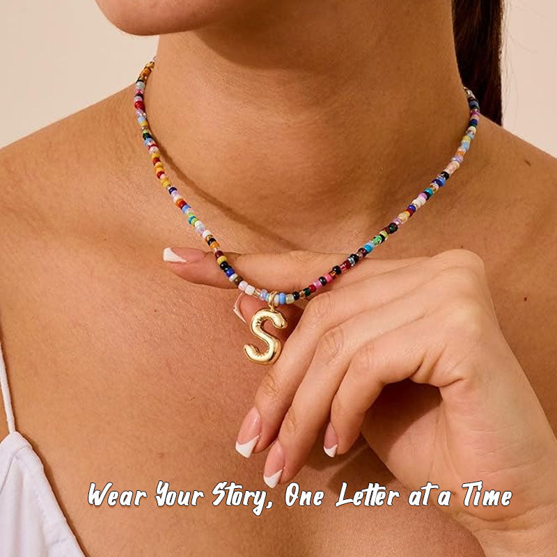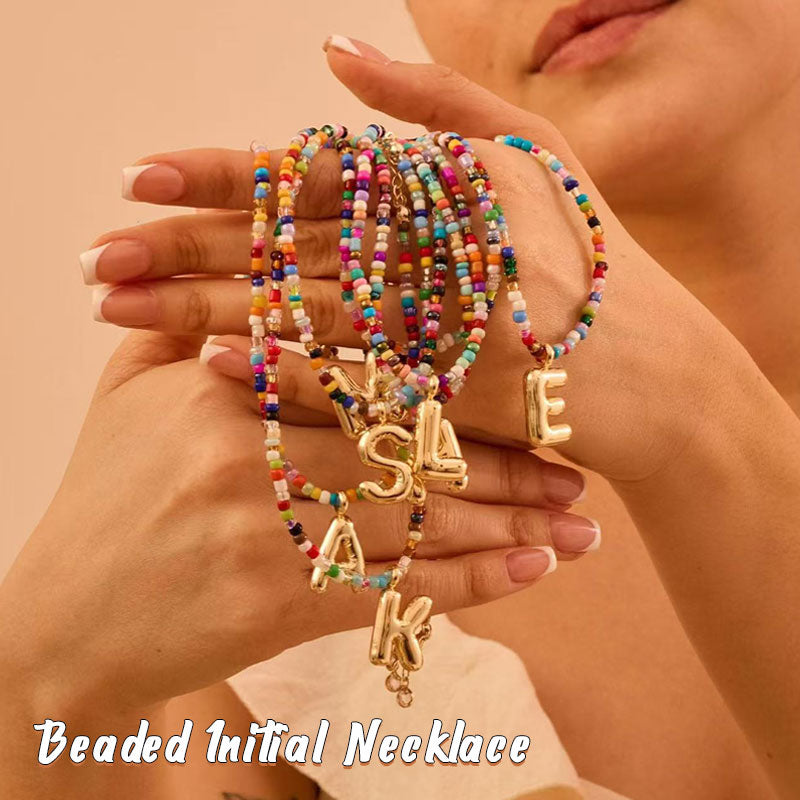 Hand-strung glass beads frame a shiny 14K gold-plated initial – transform any outfit into a personal statement with a touch of charm.